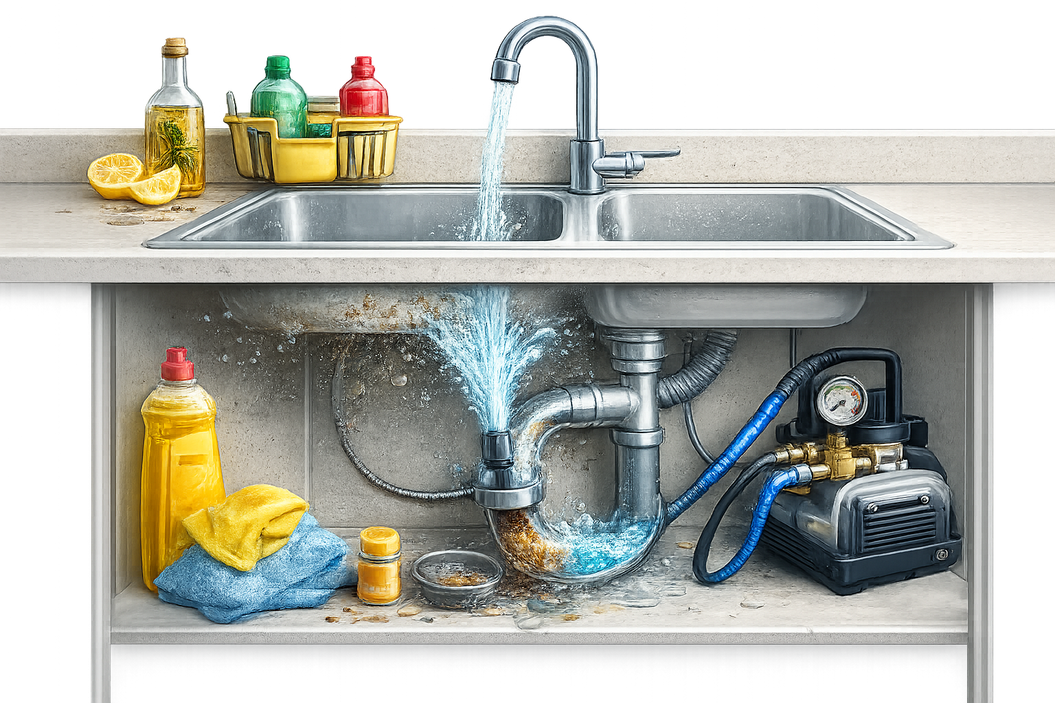 Mutfak lavabo ve eviye giderlerinde oluşan yağ ve atık tıkanıklıklarını temizliyoruz.